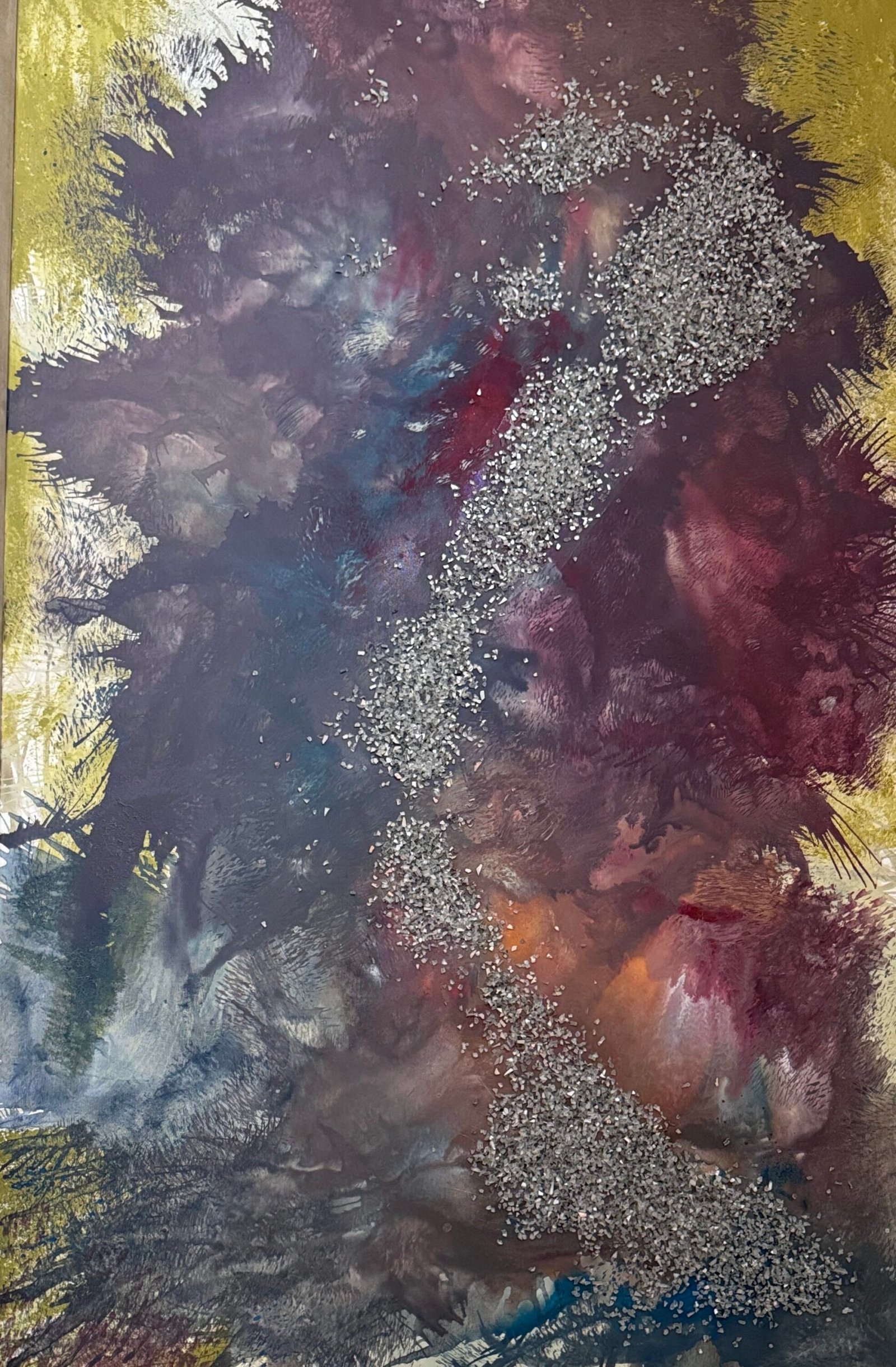 Medium: Mixed media with mineral pigments and metallic fragments on canvas
